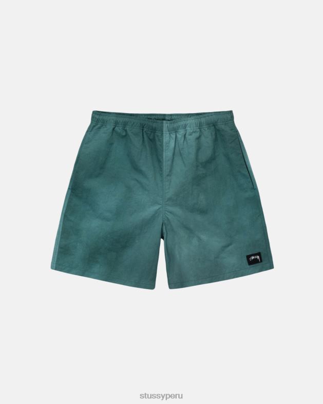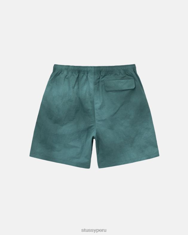 Pantalones cortos de cintura elástica de nailon teñido con tejido texturizado y secado a mano.