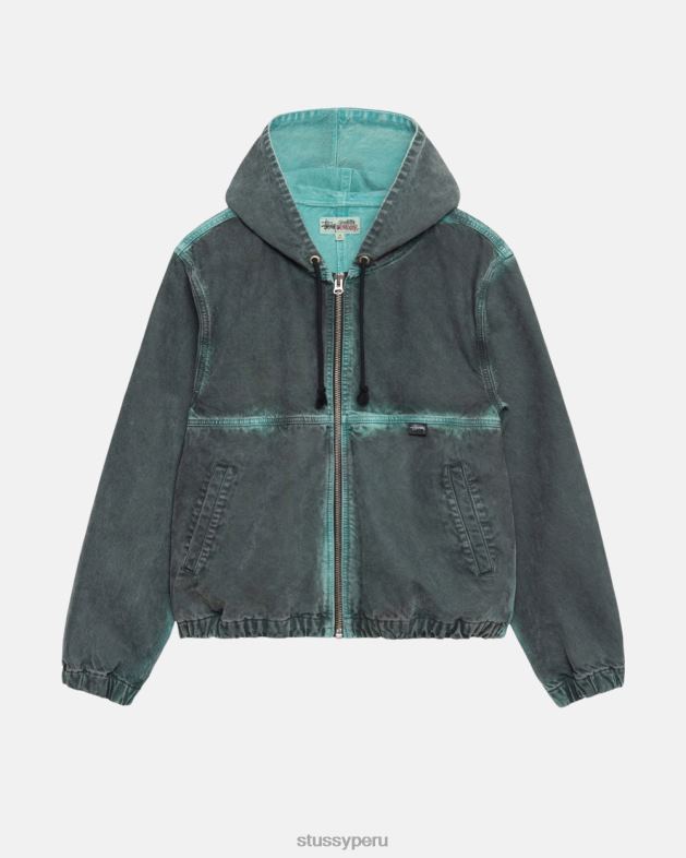 Chaqueta de trabajo vaquera toro teñida con spray irregular.