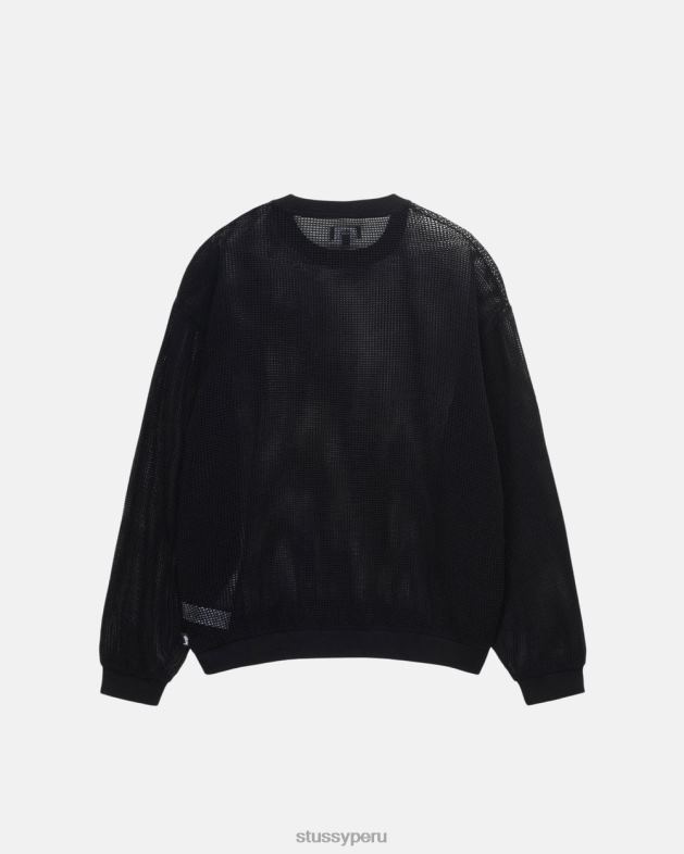 unisexo negro tripulación de malla de algodón ls N6T4D510 STUSSY parte superior y camisas